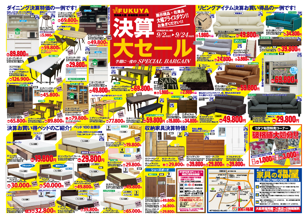 創業76周年!☆彡 パモウナ・綾野製作所・カリモク家具・浜本工芸・マルニ・柏木工・ナガノインテリア・マルイチセーリング・日本ベッド・フランスベッド・シーリー・シモンズ・パラマウントベッドなど国内外の有名ブランドから、おしゃれなインテリア雑貨まで売場面積2000坪関西最大級の広々フロアで、家具全般はもちろん、カーテン・カーペットも充実の品揃え!!
