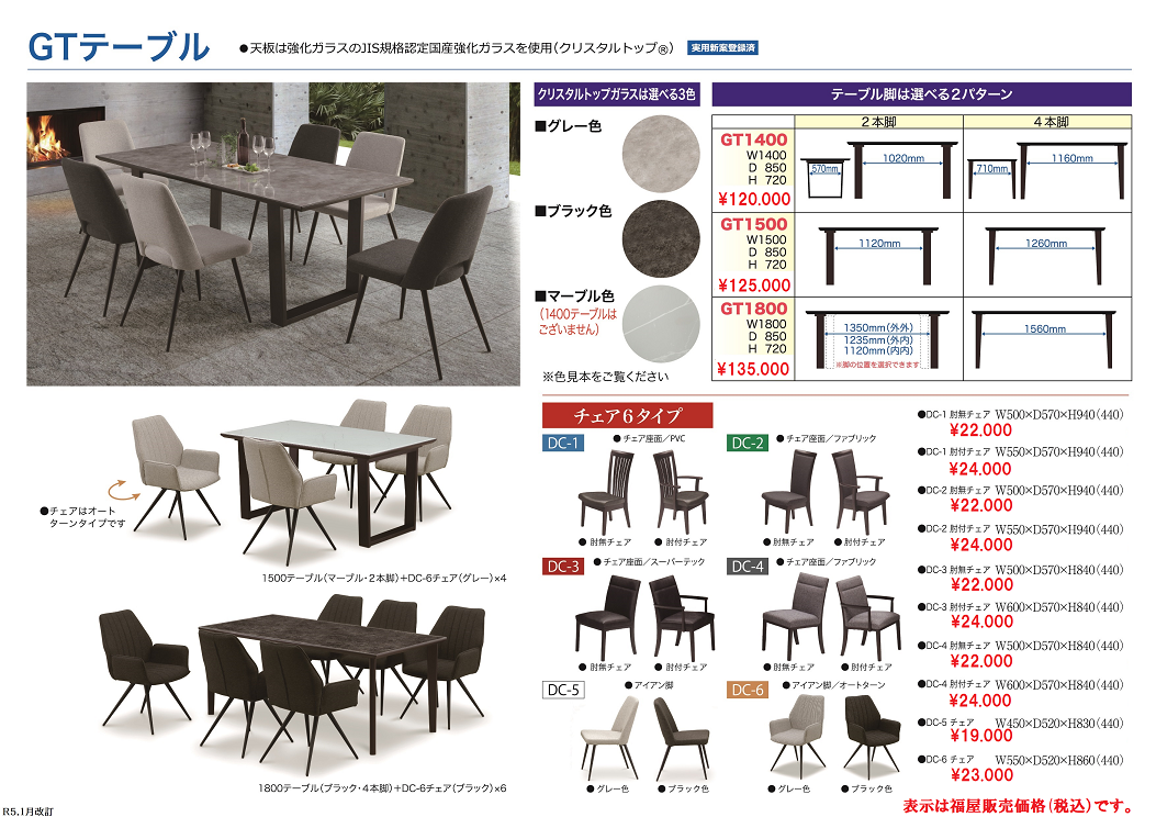 ダイニング5点セット テーブルGT150/チェアDC-5