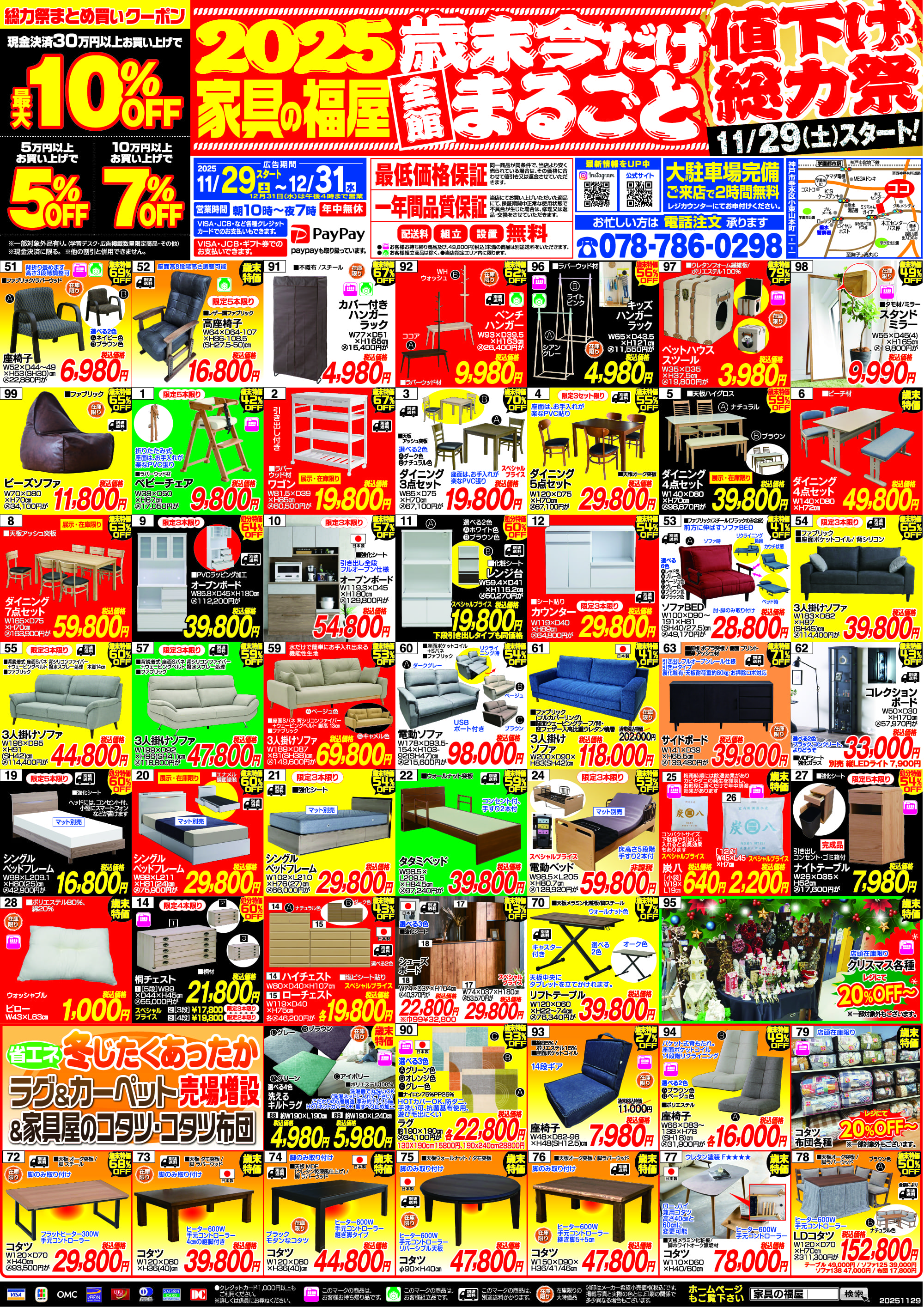 ※お客様お持ち帰り商品及び49,800円(税込)未満の商品は別途送料をいただきます。